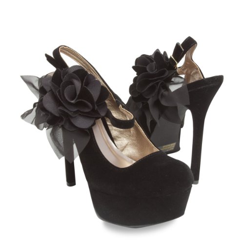 It's holiday season! This will be the perfect partner for any party event! This sexy and romantic slingback platform high heel pump has the unique elements of Mary Jane strap and mesh rose petal flower corsage on the side. The heels have an adjustable strap to the ankle and elastic goring for flexible and secure fit that will ensure to last through a night of dancing and partying. Available in 2 sexy colors of red or black. ***Actual color may defer slightly from your monitor display.?You will not be disappointed with