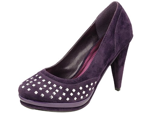 Soft suede upper decorated with silver square domes. Closed toe. Synthetic leather lining and insole. Cushioned man-made footbed. Durable man-made outsole. Approximately 4-inch suede-covered heel. 0.75-inch suede-covered platform with color matching band.You will not be disappointed with